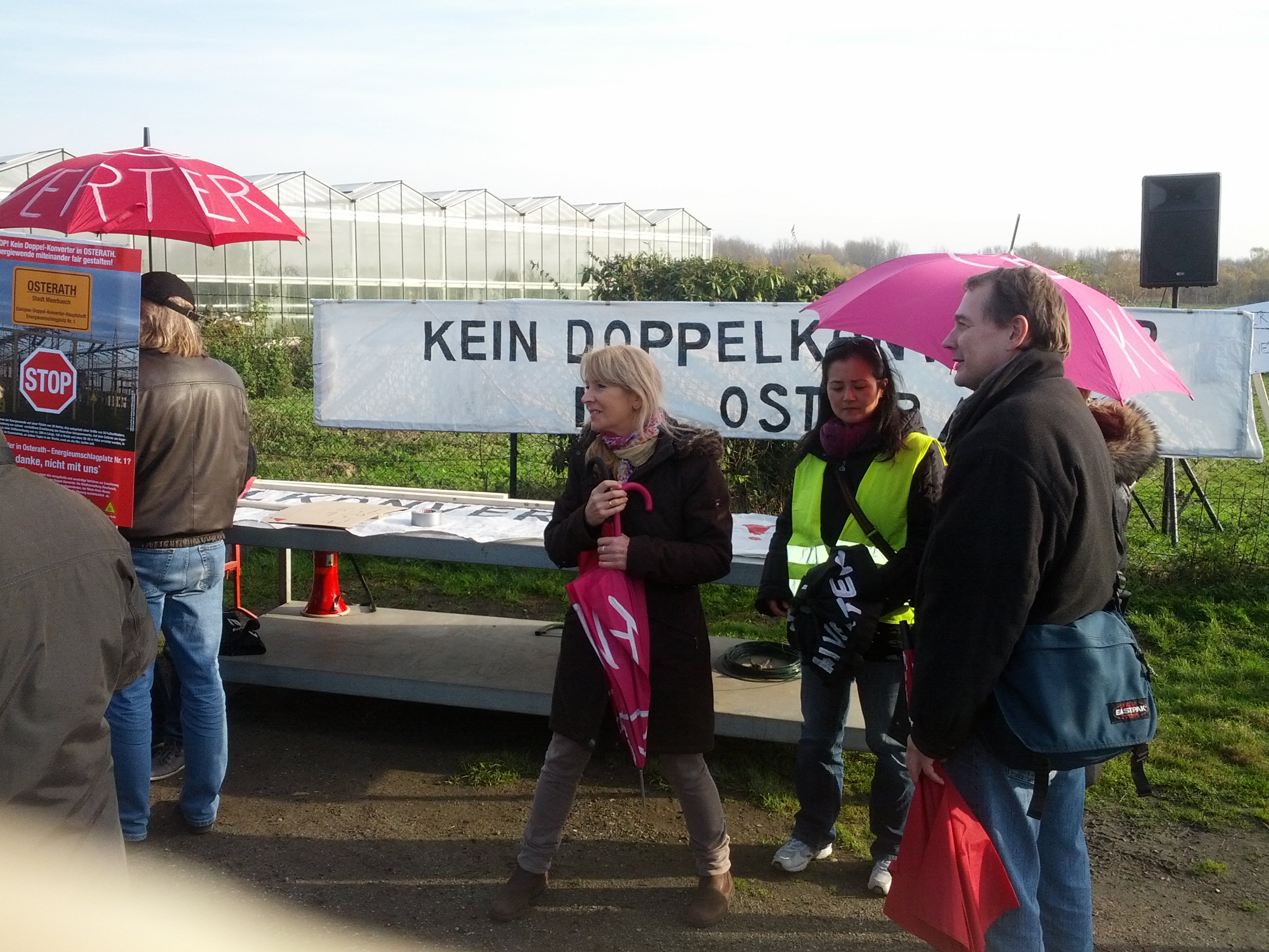 Gestern Mittag fand eine kleine Demonstration in der Nähe des Feldes, dass von Amprion für den Konverter vorgesehen ist, statt. Eingeladen hatte die BI sehr kurzfristig und auch nicht über die Presse, sondern nur per Mail und Facebook.